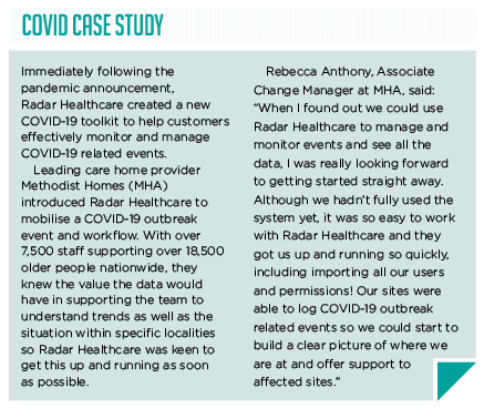 “We already had pandemic management support functionality within Radar Healthcare which has proved very useful during COVID,” Paul noted.